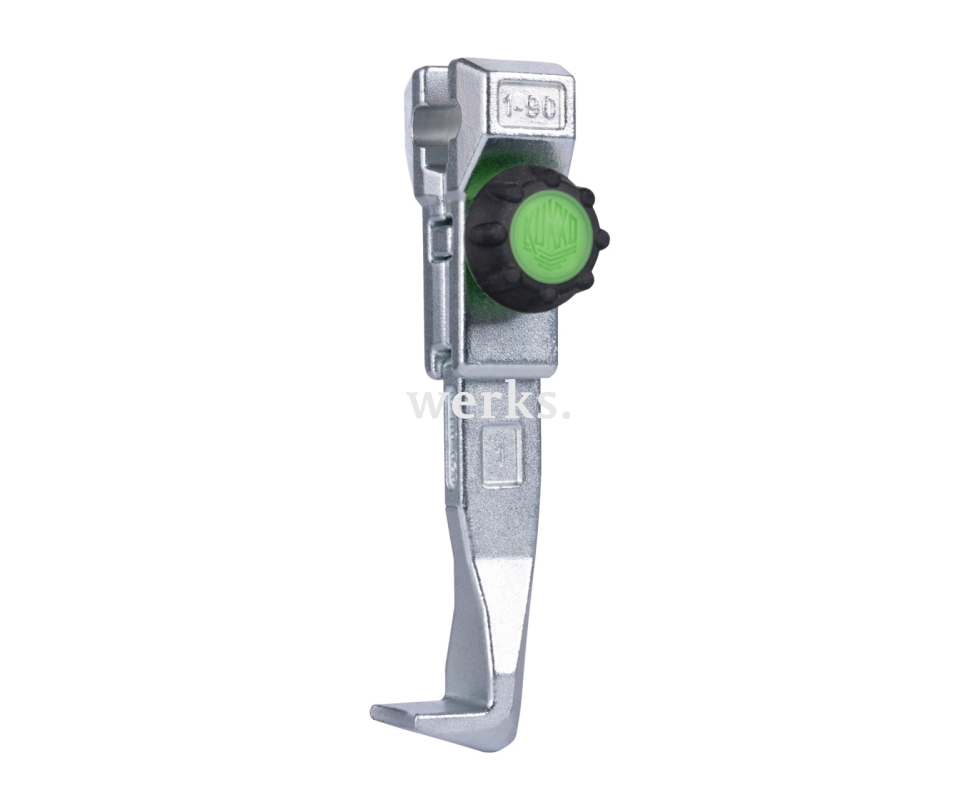 Стандартные одинарные быстрорегулируемые захваты подходят для универсальных съёмников. Прочная конструкция захватов гарантирует особенно безопасный демонтаж подшипников, шестерён и дисков. Зелёные ручки с насечкой обеспечивают максимальный комфорт в работе и позволяют быстро и без инструментов ослаблять и затягивать захваты, даже мокрыми или масляными руками. Благодаря свободно перемещающимся захватам, скользящим по траверсе, можно снимать даже эксцентриковые детали. Насечка обеспечивает быстрое и безинструментальное снятие и перемещение захватов.
