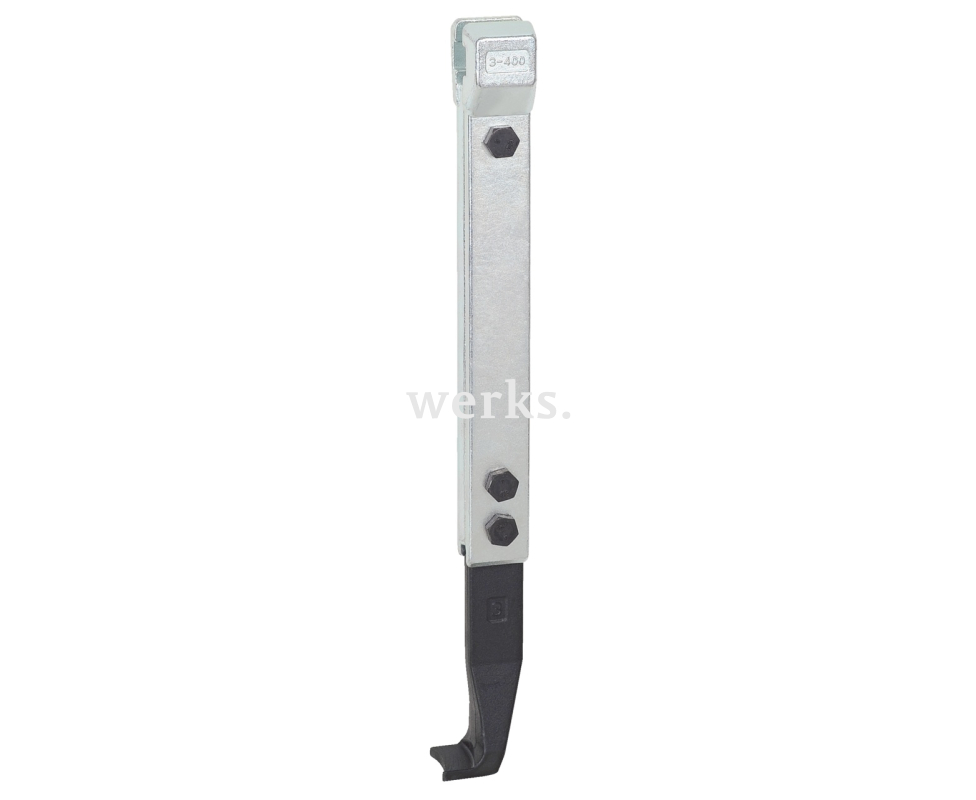 Узкая одинарная съёмная лапка подходит для универсального съёмника. Благодаря конструкции съёмной лапки можно добраться даже до узких и труднодоступных мест. Благодаря свободно перемещающимся по траверсе съёмным лапкам, можно снимать даже эксцентриковые детали.