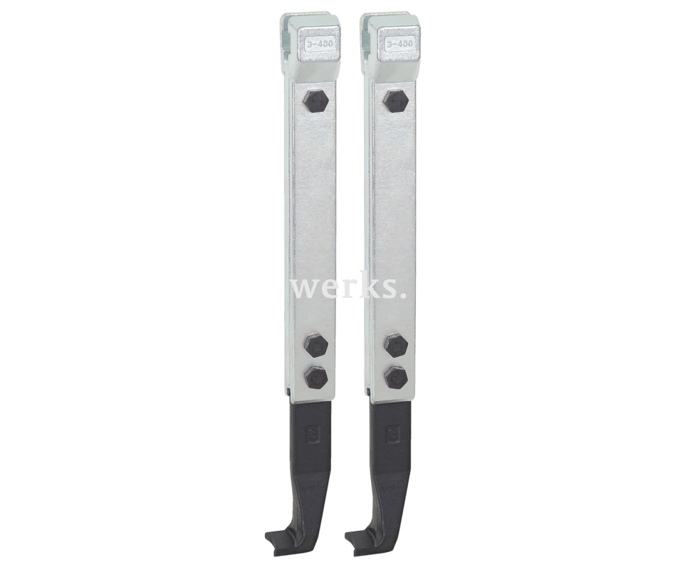 Пара из двух узких съёмных захватов подходит для универсальных съёмников с двумя захватами. Узкие захваты позволяют работать даже в узких и труднодоступных местах. Благодаря свободно движущимся захватам, скользящим по траверсе, можно снимать даже эксцентричные детали.