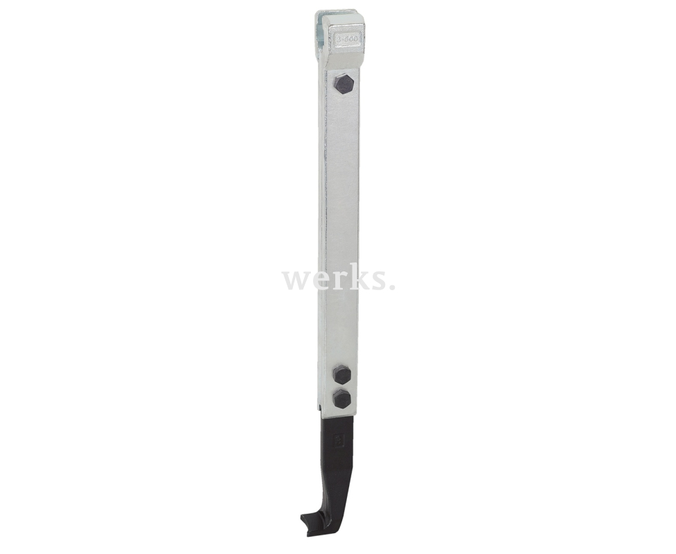Узкая одинарная съёмная лапка подходит для универсального съёмника. Благодаря конструкции съёмной лапки можно добраться даже до узких и труднодоступных мест. Благодаря свободно перемещающимся по траверсе съёмным лапкам, можно снимать даже эксцентриковые детали.