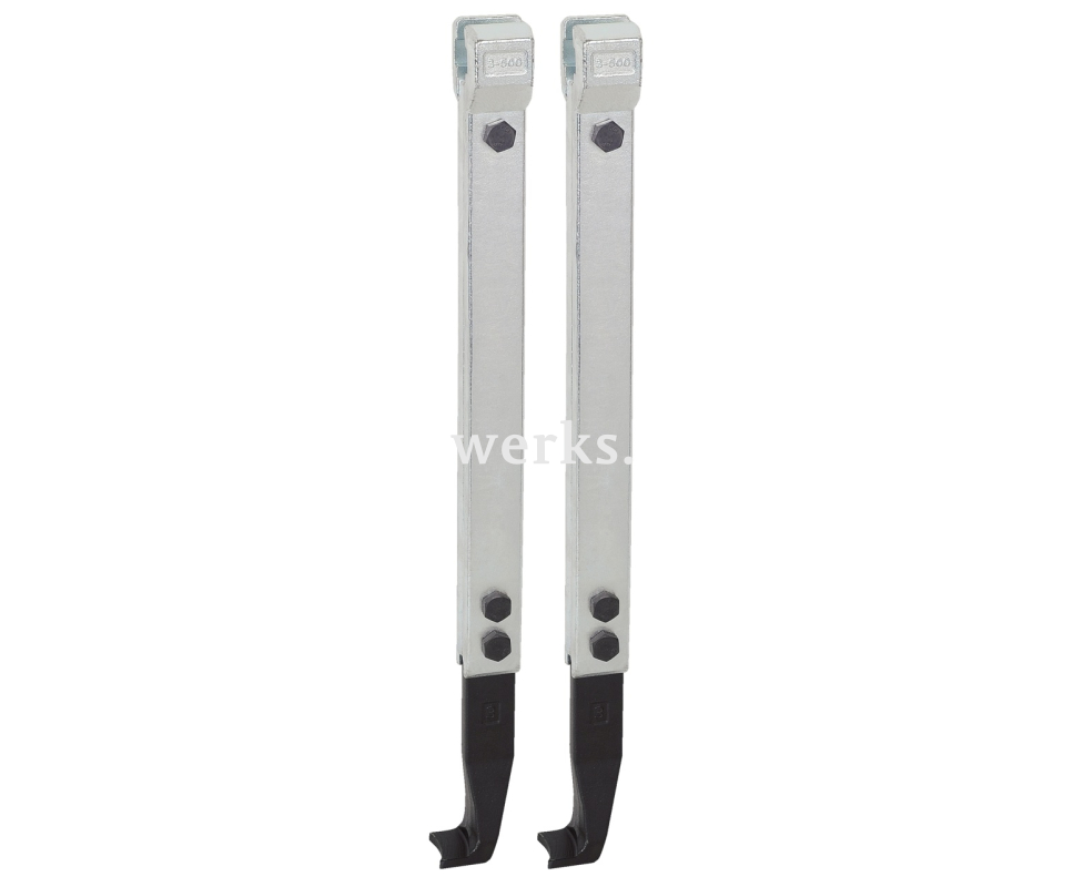 Пара из двух узких съёмных захватов подходит для универсальных съёмников с двумя захватами. Узкие захваты позволяют работать даже в узких и труднодоступных местах. Благодаря свободно движущимся захватам, скользящим по траверсе, можно снимать даже эксцентричные детали.