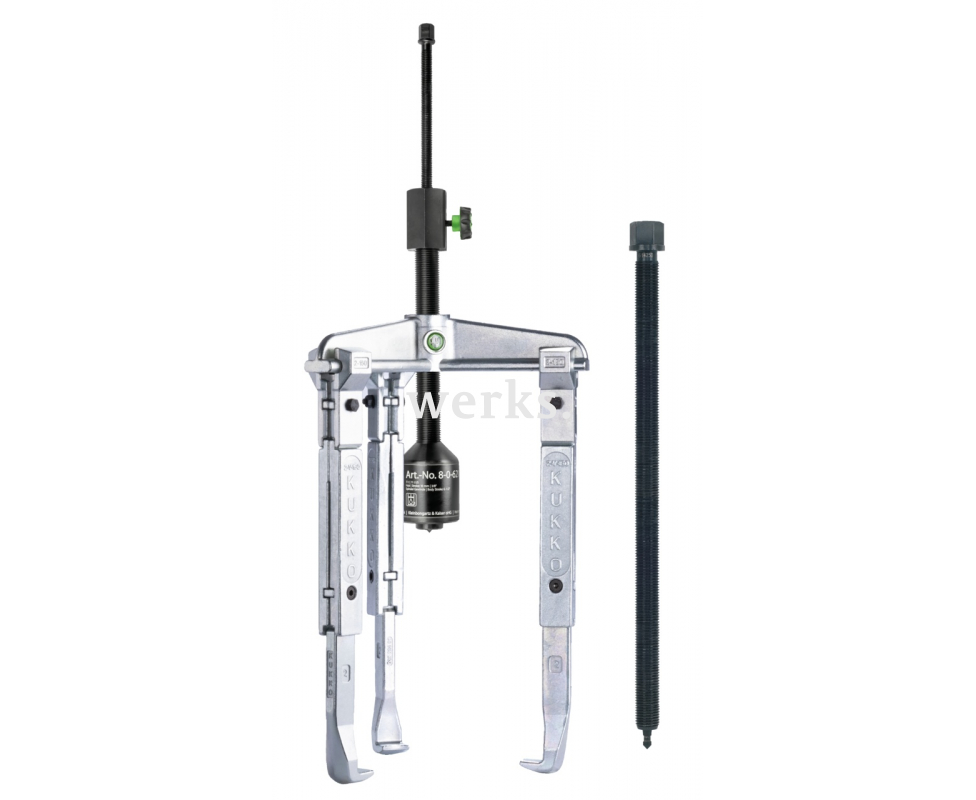 Универсальный трёхзахватный съёмник с удлинёнными захватами и длинным гидравлическим шпинделем (включая механический шпиндель) KUKKO 30-3-3-B
