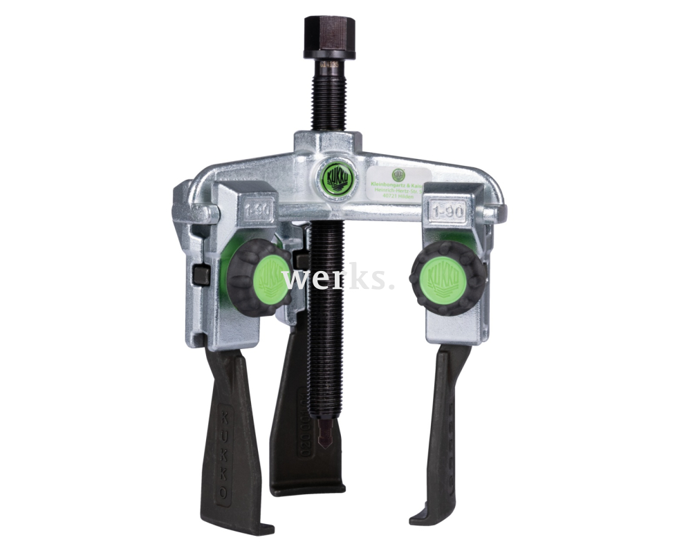 Универсальный трехзахватный съемник с узкими, быстрорегулируемыми захватами, диапазон зажима до 375 мм, глубина зажима 200 мм KUKKO 30-30xS