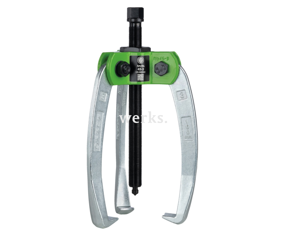 Удобный трёхлапковый промышленный съёмник с усиливающими усилие и самоцентрирующимися лапками съёмника используется для демонтажа подшипников, шестерён и дисков всех распространённых размеров в мастерских и на промышленных предприятиях. Это позволяет снять любой компонент, установленный на валу и имеющий свободный доступ снаружи. При приложении давления на шпиндель снимаемая деталь всё сильнее зажимается соединёнными лапками съёмника. Трёхлапковая конструкция гарантирует равномерное распределение нагрузки и, следовательно, надёжный захват снимаемой детали. Самоцентрирование лапок съёмника осуществляется за счёт ручного затягивания шпинделя (технология Autogrip). Надежное позиционирование шпинделя благодаря вращающемуся наконечнику шпинделя как на гладких поверхностях, так и для центрирования (технология Switch).
