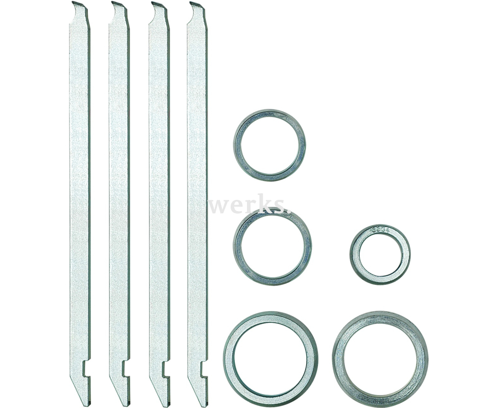 Комплекты съёмных захватов серии 70-S подходят для съёмников подшипников серии 70 и используются для неразрушающего демонтажа шарикоподшипников без снятия вала. Помимо самих захватов, в комплекты входят также опорные кольца в качестве запасных частей.