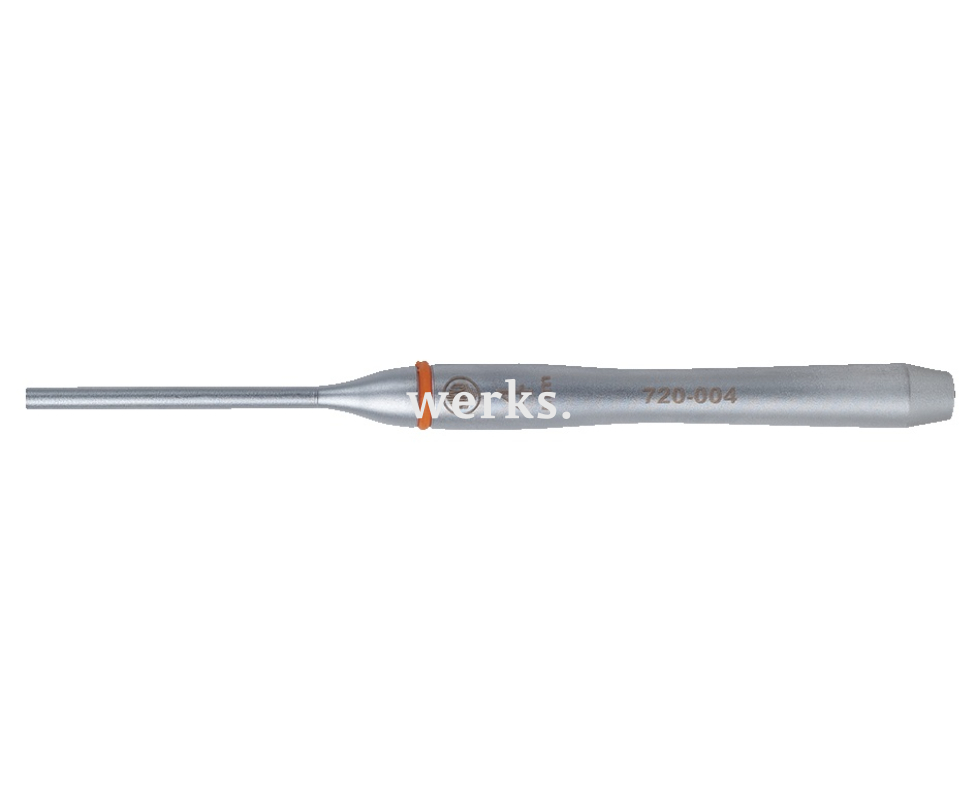 Выколотка для штифтов серии 720 используется для выбивания штифтов и подобных деталей в ремесленном производстве, промышленности и мастерских. Выколотка доступна с различными диаметрами наконечника и длиной стержня, что позволяет выбрать оптимальный инструмент в зависимости от области применения. Специально обработанная хромованадиевая сталь и хромированная поверхность обеспечивают длительный срок службы и уменьшают образование заусенцев. Изогнутая форма рукоятки обеспечивает оптимальный захват и предотвращает скольжение, гарантируя тем самым особую безопасность работы.