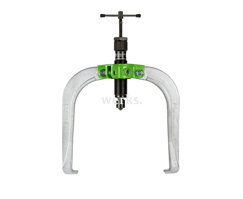 Удобный двухзахватный съёмник с самоцентрирующимися лапками, усиливающими усилие, и гидравлическим шпинделем со смазкой предназначен для демонтажа плотно посаженных подшипников, шестерён и дисков всех распространенных размеров в мастерских и промышленности. При затягивании шпинделя лапки съёмника автоматически центрируются. Гидравлический шпиндель со смазкой серии 800 является движущей силой съёмника и развивает тяговое усилие 10 тонн. Этот мощный инструмент впечатляет компактной конструкцией, простотой применения и удобством транспортировки. Ребра по бокам шпинделя обеспечивают удобный захват для пальцев при перестановке. Самоцентрирование лапок съёмника осуществляется вручную (технология Autogrip). Удлинители шпинделя позволяют быстро адаптироваться к различным требованиям.