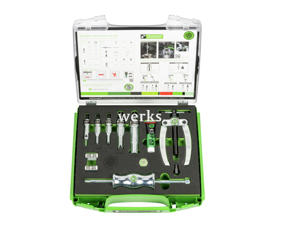 Набор для извлечения шарикоподшипников с упором, обратным молотком Ø 8-40 мм KUKKO K-22-A-M