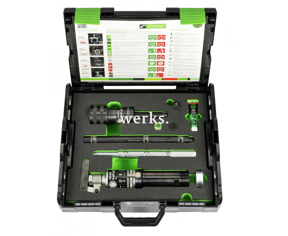 Гидравлический шпиндель с ручным рычагом в комплекте подходит для демонтажа особо плотно прилегающих подшипников, шестерён и дисков с усилием до 21 т. Благодаря встроенной системе смазки внешний насос не требуется. Плечо рычага насоса может поворачиваться на 360°. Благодаря фиксирующему кольцу гидравлический шпиндель можно использовать также для деталей с обычными сквозными отверстиями. Гидравлический шпиндель гарантирует лёгкий и контролируемый демонтаж очень плотно прилегающих деталей с минимальными усилиями. Значительное сокращение времени демонтажа благодаря простоте и быстроте использования.