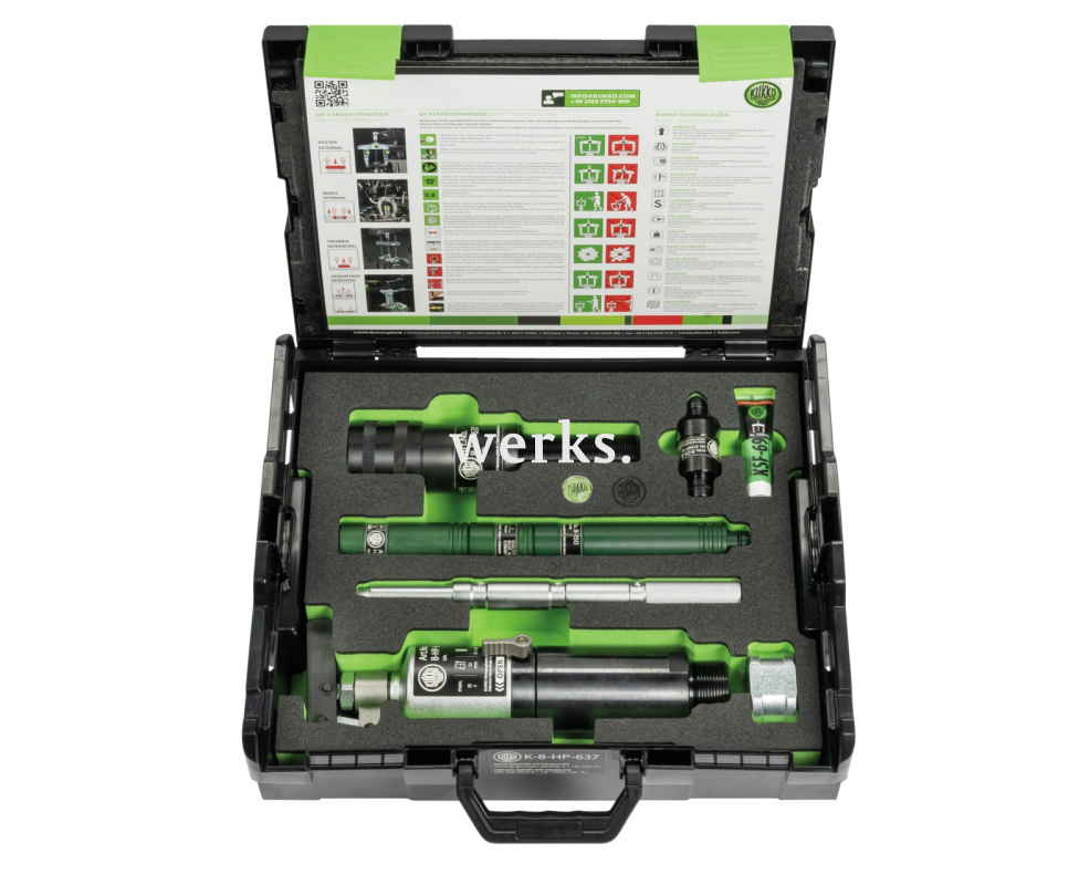 Гидравлический шпиндель с ручным рычагом в комплекте подходит для демонтажа особо плотно прилегающих подшипников, шестерён и дисков с усилием до 21 т. Благодаря встроенной системе смазки внешний насос не требуется. Плечо рычага насоса может поворачиваться на 360°. Благодаря фиксирующему кольцу гидравлический шпиндель можно использовать также для деталей с обычными сквозными отверстиями. Гидравлический шпиндель гарантирует лёгкий и контролируемый демонтаж очень плотно прилегающих деталей с минимальными усилиями. Значительное сокращение времени демонтажа благодаря простоте и быстроте использования.