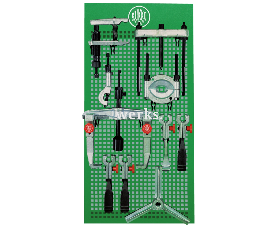 Набор съёмников TOP для коммерческого транспорта представляет собой настенную панель, оснащённую необходимыми инструментами для использования и хранения в мастерских и на производстве. В комплект входят универсальные съёмники, а также крюки и трёхлапковая траверса, которые благодаря модульной системе KUKKO можно комбинировать в различные внешние съёмники для различных применений. Специально для коммерческого транспорта в комплект входят разделительный съёмник и съёмник, а также короткий гидравлический шпиндель, гайкорез и мощный съёмник шаровых шарниров для эффективного снятия различных плотно прилегающих деталей. Составление основано на многолетнем опыте применения в различных отраслях промышленности. Доступность продукции для каждого сотрудника.