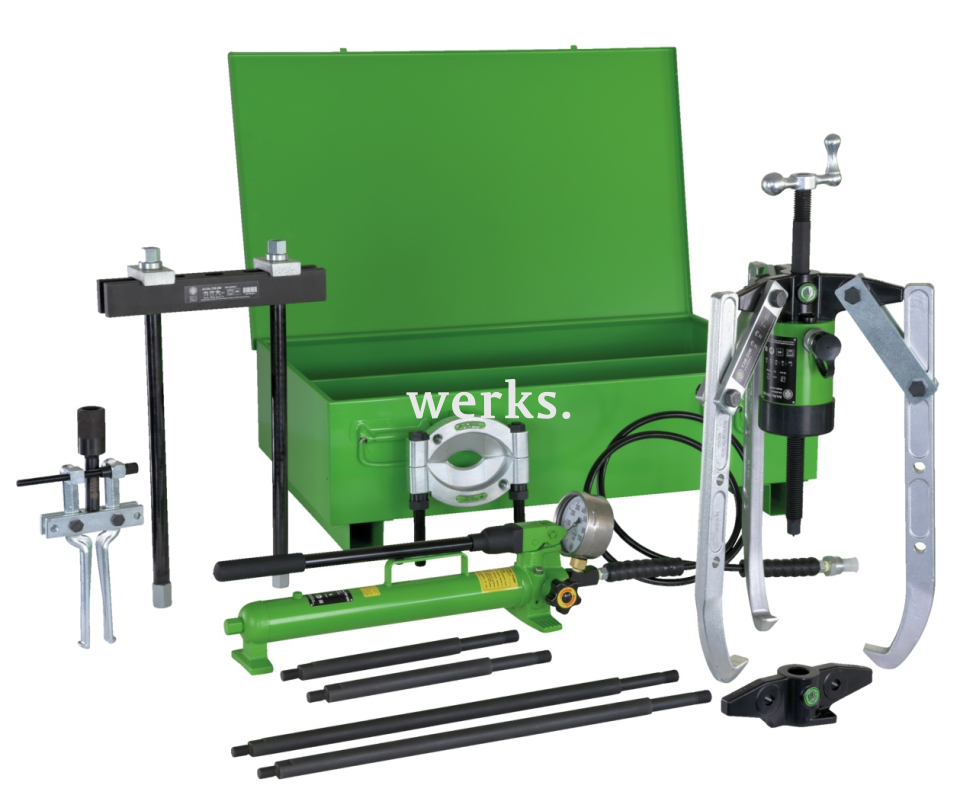 Универсальный гидравлический съёмник Y28-200, состоящий из 18 частей, предназначен для демонтажа, разъединения и внутреннего извлечения особо крупных и заклинивших подшипников, шестерён, дисков и т.д. в промышленных и коммерческих автомобилях. Для работы с набором не требуются дополнительные принадлежности. Помимо гидравлического цилиндра с полым поршнем, ручного насоса, манометра и шланга, в комплект входят двух- и трёхлапковые съёмники, разделительные ножи, внутренние съёмники, контропоры и удлинители, обеспечивающие универсальное решение для любых задач. Универсальная комплектация, ориентированная на конкретную область применения. Хранение в металлическом кейсе позволяет легко контролировать комплектность набора.