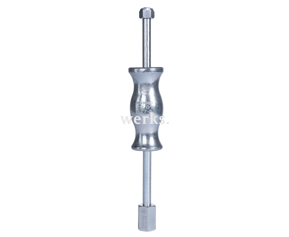 Устройство для извлечения скользящего молотка является запасной частью универсального набора съемников 27-А и позволяет осуществлять внутреннее извлечение без использования опорных поверхностей.