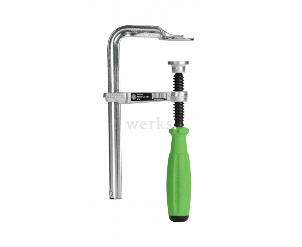 Цельнометаллические винтовые струбцины VIRIDIS с удобной рукояткой 2K серии 469P используются для сжатия и фиксации нескольких заготовок в ремесленном производстве, промышленности и мастерских. Благодаря встроенной пружине винтовые струбцины поглощают вибрации заготовки. Серия 469P оснащена двухкомпонентной рукояткой, обеспечивающей безопасную и стабильную работу. Усилие зажима до 10 000 Н. Прижимная пластина со встроенной блокировкой шпинделя предотвращает ослабление зажима при вибрации заготовки.