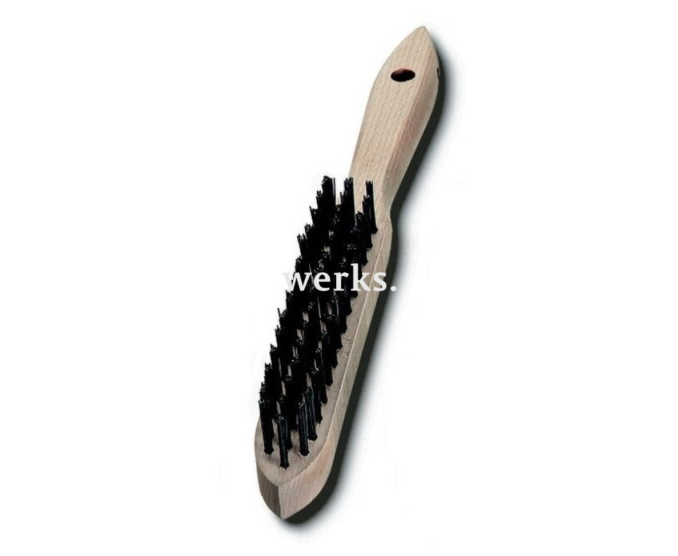 Нержавеющая стальная проволока прямого типа диаметром 0,30 мм. Длина рабочей зоны составляет 140 мм. Длина ворса равна 25 мм. Рукоятка выполнена из бука и имеет отверстие для подвешивания диаметром Ø8 мм. 103 721