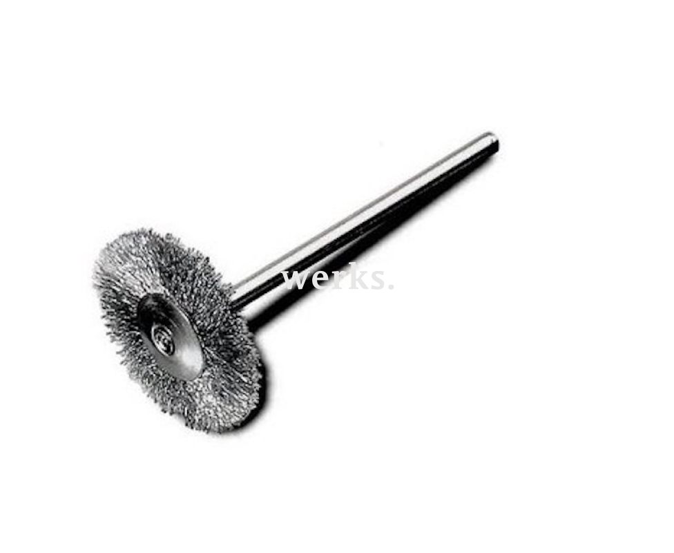 Предельная скорость вращения составляет 10 000 об/мин. Длина проволоки равна 6 мм. Диаметр рабочей поверхности 22 мм, а её толщина — 2 мм. Прямая стальная проволока имеет диаметр 0,10 мм. Хвостовик имеет диаметр 3 мм. 410 223