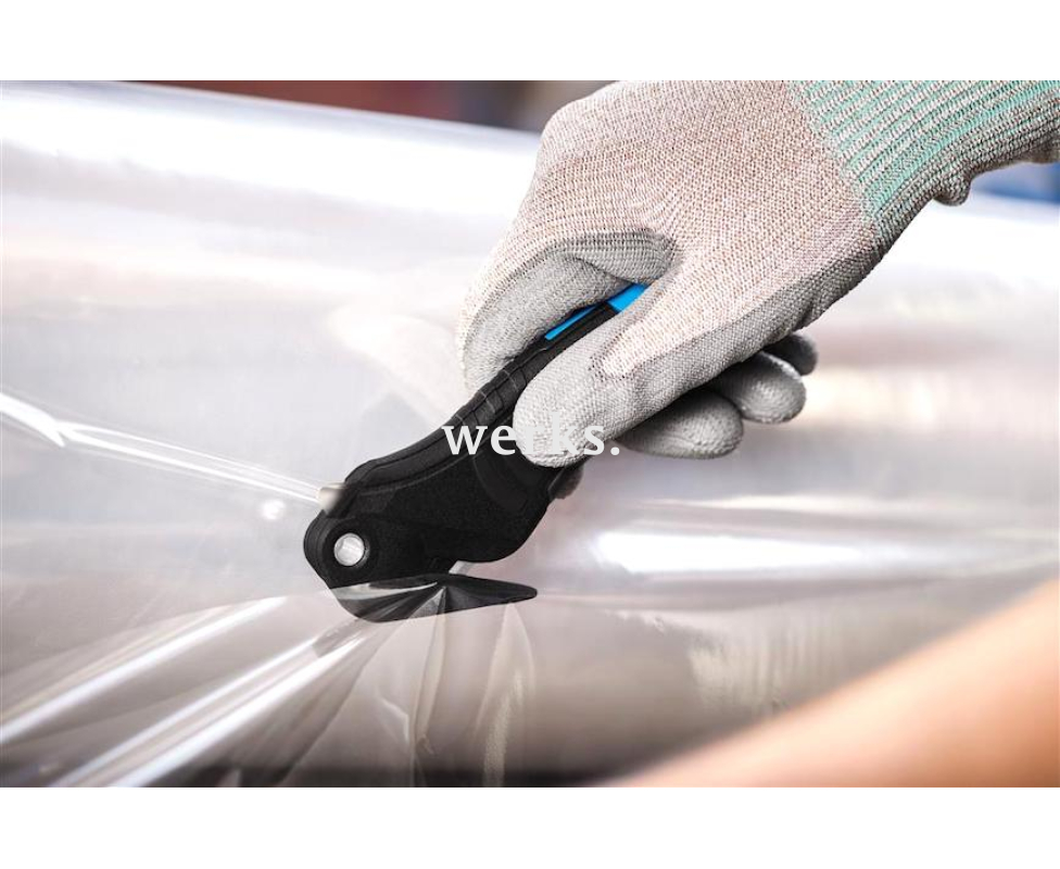 Профессиональный универсальный нож с металлодетектируемым лезвием и удобной рукояткой. Корпус изготовлен из пластика, который можно обнаружить металлодетектором. Режущая головка значительно усилена по сравнению с аналогичными моделями. Форма канала реза позволяет ножу эффективно отводить в сторону отрезанный материал, что упрощает выполнение косых резов. Скрытое размещение лезвия предотвращает травмы пальцев и повреждения товаров. Замена лезвия осуществляется быстро: достаточно вытащить сменную головку, поднять крышку и увидеть лезвие. Глубина реза составляет 4 мм. Новая форма ручки с Soft-Grip покрытием обеспечивает дополнительный комфорт. Нож идеально подходит для аккуратной резки различных пленок, пластиковых обвязок, кожи и ремней. Запасное лезвие - 192043.66. 32000771.02