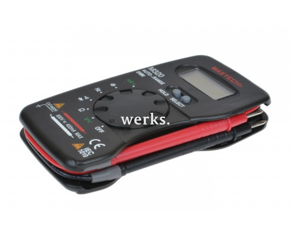 Надежный, безопасный и точный карманный цифровой мультиметр. Обеспечивает измерения силы постоянного и переменного тока, напряжения, сопротивления, электроемкости и частоты с частотой 2-3 раза в секунду. Удобен для тестирования диодов и прозвонки цепей — при сопротивлении ниже 50 Ω издает звуковой сигнал. Оснащен трехразрядным ЖК-дисплеем, индикатором разряда батарей и перегрузки. Имеет функцию удержания данных, автоматический выбор диапазона измерений и отключение при простое. Поставляется в картонной упаковке с измерительными щупами, батареями и мягким чехлом. Напряжение постоянного тока - 400 мВ/4/40/400/600 В (±0.5%±3) Напряжение переменного тока - 4/40/400/600 В (±0.8%±4) Сила постоянного тока - 40/400 мА (±2% ±3) Сила переменного тока - 40/400 мА (±3% ±4) Электрическое сопротивление - 0,4 КΩ÷40 МΩ (±1.0%±3) Тестирование диодов - 2,8 В Частота - 0,01 Гц÷100 кГц (±0,5% ±3) Электроемкость - 4 нФ÷100 мкФ (±3% ±3) Питание - 2 х 1,5 В батарейки АА Защита от перегрузки - CAT III 300 В/CAT II 600 В Диапазон рабочих температур - 0÷+40°С, влажность <75% Размеры - 120 x 70 x 18 мм Вес - 110 г. Применяется для измерения переменного и постоянного тока, напряжения, сопротивления, тестирования диодов, частоты и электроемкости, а также прозвонки цепей. Идеально подходит для работы с электротехническим и электронным оборудованием как в лабораториях, так и в домашних условиях.