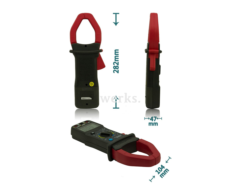 Цифровые универсальные токоизмерительные клещи-мультиметр, обеспечивающие безопасные и точные измерения. Они способны выполнять замеры силы переменного тока, постоянного и переменного напряжения, сопротивления, частоты и температуры с частотой 2-3 раза в секунду. Также предусмотрена функция прозвонки цепи (зуммер с сопротивлением менее 30 Ω). Удобны для тестирования диодов и транзисторов. Оснащены большим 3,5-разрядным ЖК-дисплеем с подсветкой. Линейная шкала внизу экрана отображает результаты в линейном формате. Имеется функция удержания данных и ручной выбор диапазона измерений. Индикация разряда батареи. Поставляются в картонной упаковке с измерительными щупами, термопарой типа К, чехлом и батареей. Напряжение постоянного тока - 2/20/200/1000 В (±0.5% ±1) Напряжение переменного тока - 200/750 В (±1.0% ±3) Сила переменного тока - 200/2000 А (±1.0% ±3) Электрическое сопротивление - 200 Ω/20 КΩ/2 МΩ (±1.0% ±3) Частота - 2/20 КГц (±1.5% ±15) Температура - 0℃~400℃ (±1.0% ±3); 401℃~750℃ (±2.0% ±1) Тестирование диодов - 3,0 В Питание - 1 х 9 В батарейка типа Крона Защита от перегрузки - CAT II 1000 В Раскрытие клещей - Ø55 мм Размеры - 282 x 104 x 47 мм Вес - 570 г. Эти клещи предназначены для измерения переменного тока, постоянного и переменного напряжения, сопротивления, температуры и частоты, а также для тестирования диодов. Они идеально подходят для работы с электротехническим и электронным оборудованием в лабораториях, на производстве и в домашних условиях.