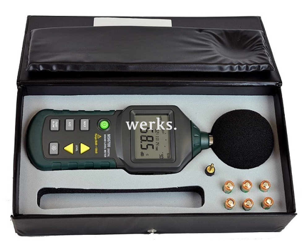 Цифровой шумомер. Устойчивый пластиковый корпус. Предназначен для точного измерения уровня звука в различных условиях и широком диапазоне. Включает высокочувствительный микрофон, фильтр, усилитель сигнала и 3,5-разрядный ЖК-дисплей с подсветкой. Подключается к компьютеру через последовательный порт RS-232 для обработки данных. Возможен автоматический и ручной выбор диапазона. Функция удержания данных. Опция определения максимального и минимального значений замера. Над цифровой шкалой расположена линейная графическая шкала для наглядного отображения измерений. Измерения проводятся дважды в секунду. Индикация разряда батареи и выхода значения за пределы измерений. Автоматическое отключение при бездействии. На дисплее отображаются дата и время. Поставляется в картонной упаковке с вилкой для наушников, мягкой сумкой для хранения и батареями. Уровень звука: - 30÷130 дБ (±1.5 дБ), разрешение 0,1 дБ Диапазон частот - 30 Hz~8 kHz Питание - 6 х 1,5 В батарейки ААА Размеры - 265 x 80 x 69 мм Вес - 317 г. Применяется для измерения уровня звука в широком диапазоне. Отлично подходит для лабораторий и промышленных предприятий.