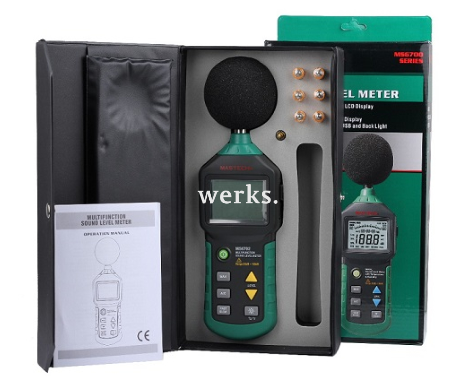 Универсальный цифровой шумомер, который также выполняет функции термометра и гигрометра. Он имеет прочный пластиковый корпус и предназначен для точного измерения уровня звука в различных условиях, а также для определения температуры и влажности. Устройство включает высокочувствительный микрофон, фильтр, усилитель сигнала и 3,5-разрядный ЖК-дисплей с подсветкой. Возможен автоматический и ручной выбор диапазона. Имеется функция удержания данных и возможность определения максимальных и минимальных значений. Над цифровым экраном расположена линейная графическая шкала для наглядного отображения измерений. Измерения проводятся дважды в секунду. Устройство сигнализирует о разряде батареи и выходе значений за пределы измерений. Автоматическое отключение при простое. Доступен выбор быстрого (125 мс) и медленного (1 сек) режимов измерения. Поставляется в картонной упаковке с вилкой для наушников, мягкой сумкой для хранения и батареями. Уровень звука: - 30÷130 дБ (±1.5 дБ), разрешение 0,1 дБ Диапазон частот: - 30 Hz~8 kHz Температура: - -20℃~10℃ (±2℃) - 10℃~60℃ (±1℃) Относительная влажность: - 10%~90% (±3.5%) Питание: - 6 х 1,5 В батарейки ААА Размеры: - 265 x 80 x 69 мм Вес: - 317 г. Этот инструмент используется для измерения уровня звука, температуры и относительной влажности. Он идеально подходит для автомастерских, лабораторий, промышленных предприятий и метеонаблюдений.