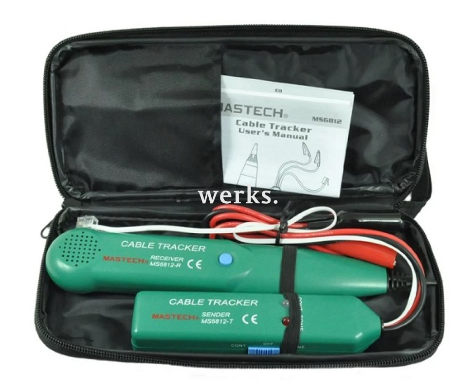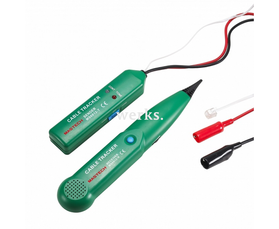 Компактный сетевой кабельный тестер-трассоискатель. Он предназначен для обнаружения проводов и кабелей, а также для оценки состояния телефонной линии (свободно, занято, набор номера) без повреждения изоляции. Устройство состоит из передатчика (MS6812-T) и приемника (MS6812-R). Тест сопровождается звуковыми и световыми сигналами. Есть индикация разряда батареи. В комплект входит выносной блок, поставляемый в картонной упаковке с батареями и сумкой для хранения. Частота передаваемого сигнала - 1,5 кГц. Частота принимаемого сигнала - 100 Гц до 300 кГц. Питание осуществляется от двух 9 В батареек типа Крона. Размеры: приемник - 238 x 43 x 26 мм; передатчик - 145 x 35 x 25 мм. Вес - 71 г и 87 г соответственно. Устройство позволяет точно выявлять места обрыва кабеля, проверять электрический контакт между двумя точками, определять тональный сигнал телефонной линии, а также полярность на выводах телефонной линии и наличие сигнала вызова абонента. Идеально подходит для работы сетевыми инженерами, телефонистами, в лабораториях, на телефонных станциях и в распределительных коробках.