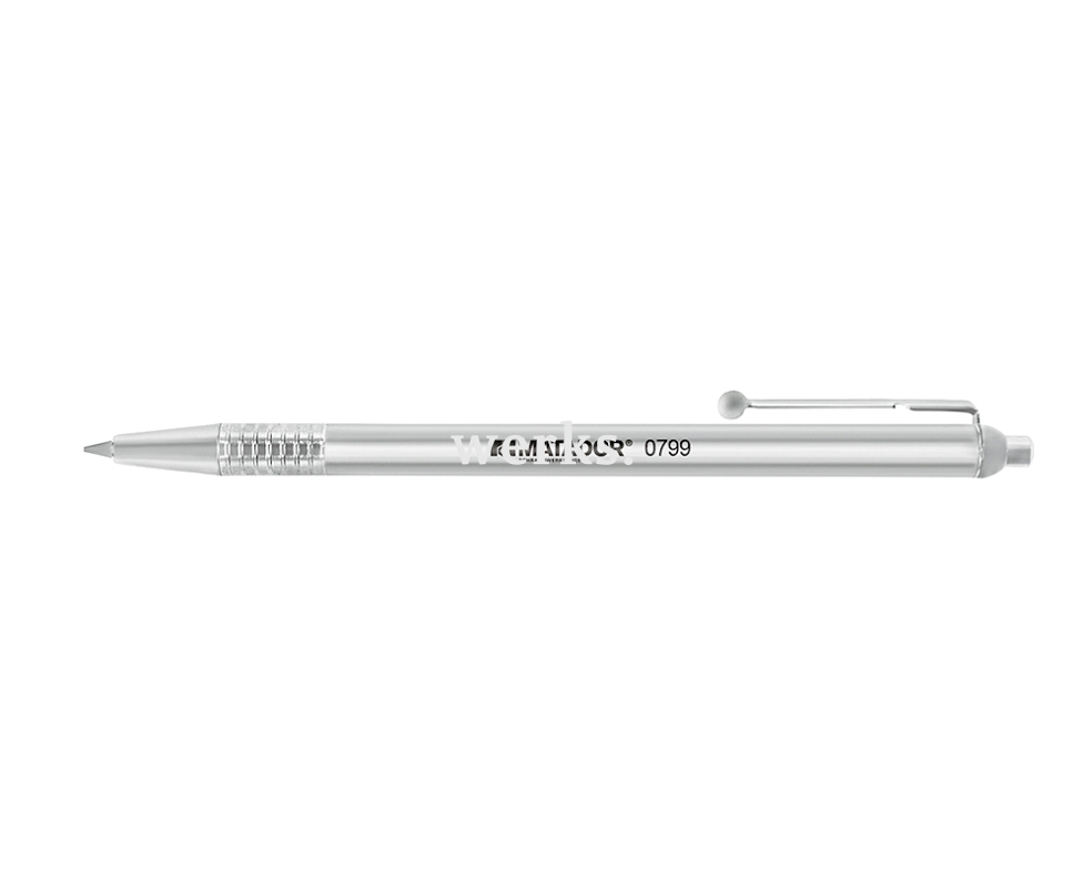 Маркер-чертилка, выполненный в виде авторучки из прочной хромванадиевой стали с хромированным покрытием. Он предназначен для создания разметки на очень твердых поверхностях. Оснащен выдвижным сменным твердосплавным стержнем. Корпус имеет насечки и гофрировку для удобного захвата. Также предусмотрен клипсовидный зажим для удобного хранения на кармане рабочей одежды.