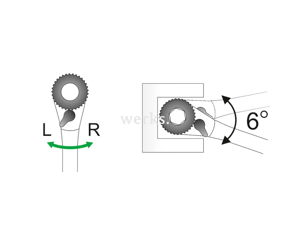 В комплект входит 30 бит (SL, PH, PZ, HEX, TORX, TORX BO), изготовленных из высокопрочной легированной стали, а также реверсивная мини-трещотка с квадратным приводом 1/4 дюйма и адаптером. Угол возврата трещотки составляет 6°. Инструмент удобно использовать в ограниченных пространствах, при ширине зазора над головкой винта 25,5 мм. Все это упаковано в прочный и удобный пластиковый кейс с креплением для пояса.