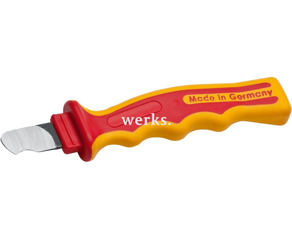 Нож VDE с прямым лезвием и шлифованным полукругом для полимерного кабеля 190 мм NWS 2041K с рукояткой SoftGripp