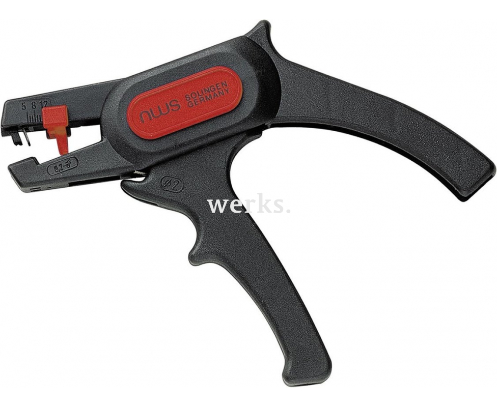 Пистолетный инструмент с открытой пружиной, замыкателем и встроенными бокорезами. Он предназначен для удаления изоляции с одно-, многожильных и тонкожильных проводов со стандартной изоляцией. Длина снимаемой изоляции регулируется в диапазоне от 5 до 12 мм. Изготовлен из полимерного материала, усиленного стекловолокном. 704-180