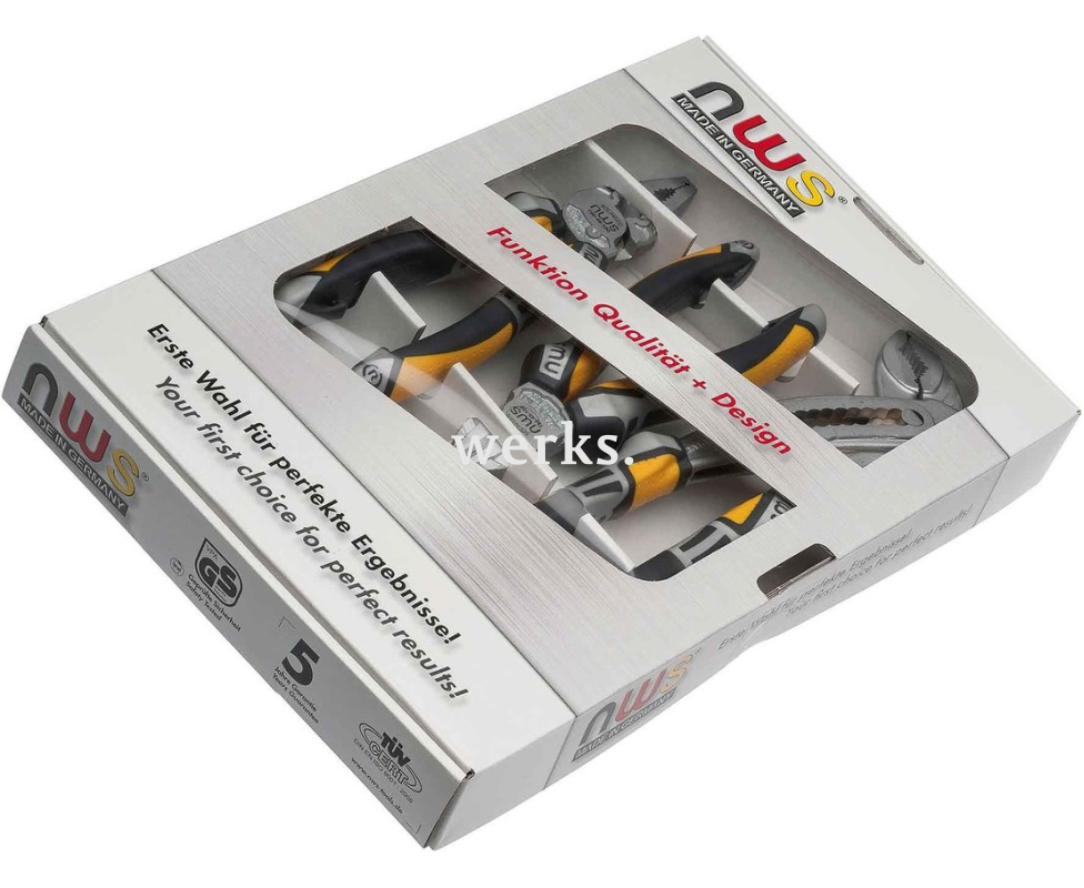 В комплект входят профессиональные плоскогубцы (180 мм), регулируемые клещи (250 мм) и бокорезы (160 мм), выполненные из хромированного материала с рукоятками SoftGripp. Упаковка выполнена из удобного картона.