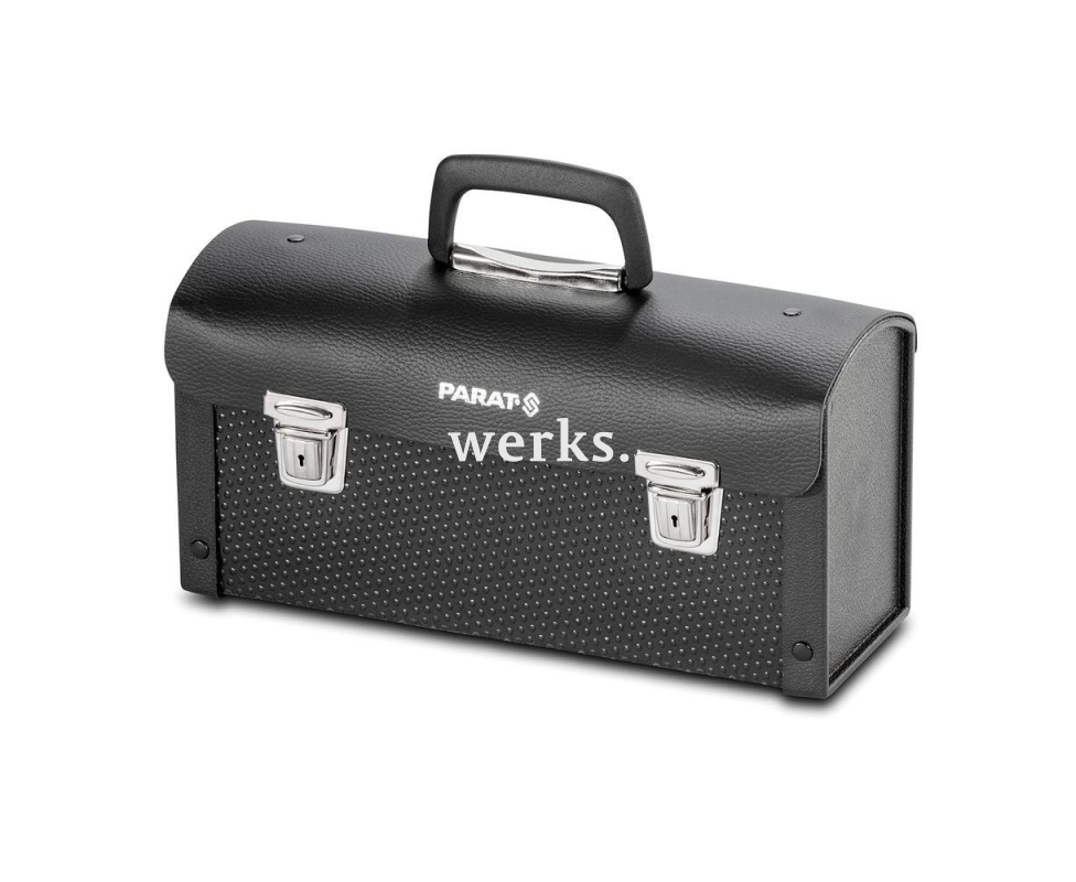Сумка для инструментов черного цвета выполнена из высококачественной яловичной кожи. По всему периметру она усилена пластиковыми ребрами жесткости X-ABS, а внутренняя отделка сделана из материала Con-Pearl. Объем составляет 7 литров. Удобная пластиковая ручка обеспечивает комфорт при переноске. Оснащена двумя замками-защелками. Обладает повышенной устойчивостью к влаге. Эта сумка идеально подойдет как для профессионалов, так и для домашних мастеров.