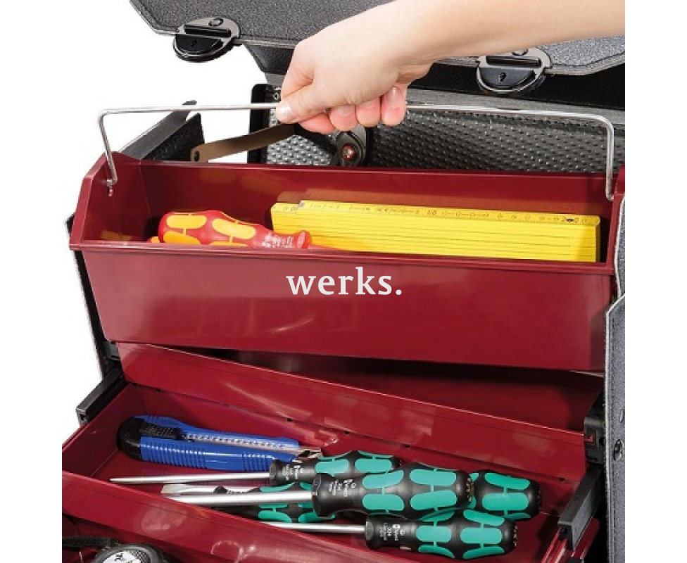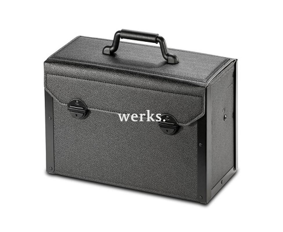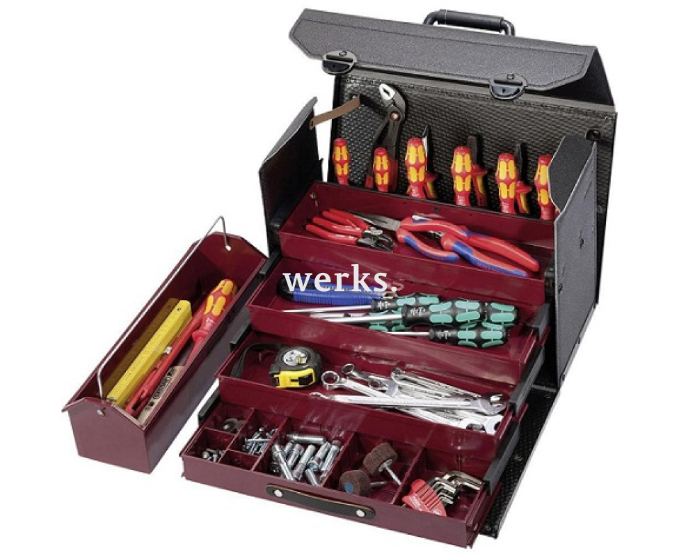 Сумка для инструментов черного цвета с выдвижными ящиками выполнена из высококачественной яловичной кожи. Внутреннее оформление состоит из легких панелей из полипропилена Con-Pearl. Объем составляет 22 литра. Откидная передняя стенка обеспечивает доступ к четырем выдвижным ящикам для инструментов и аксессуаров. В комплект входят два держателя инструмента CP-7 (Ø15 и Ø26 мм). Это переносной контейнер для инструментов. Нижняя часть оснащена ячейками для хранения мелких предметов и крепежа. Удобная и прочная ручка. Два замка-защелки Parat.