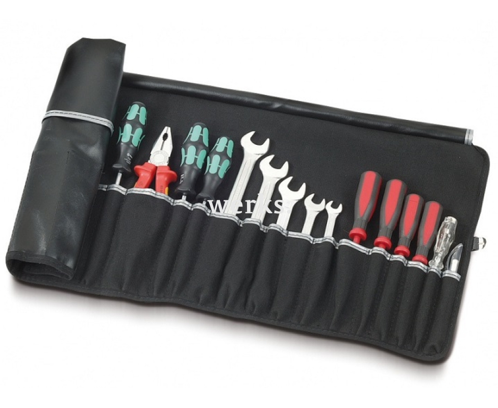 Сумка черного цвета, которая сворачивается в компактный рулон, выполнена из прочного и устойчивого к износу кожзаменителя. Она оснащена 20 карманами для инструментов. Эта сумка удобна для транспортировки и хранения инструментов, например, на стене в мастерской, где ее можно подвесить. Товар доступен только из наличия на складе, предзаказ не предусмотрен, замена на PA-5990829991.