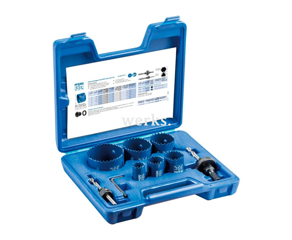 Набор коронок LS-SO 9 E-1 предназначен для сверления больших отверстий в металле. Включает несколько диаметров для различных задач и материалов. Твердосплавные зубья обеспечивают чистый рез без заусенцев. Комплект поставляется с оправкой и адаптерами для стандартных дрелей.