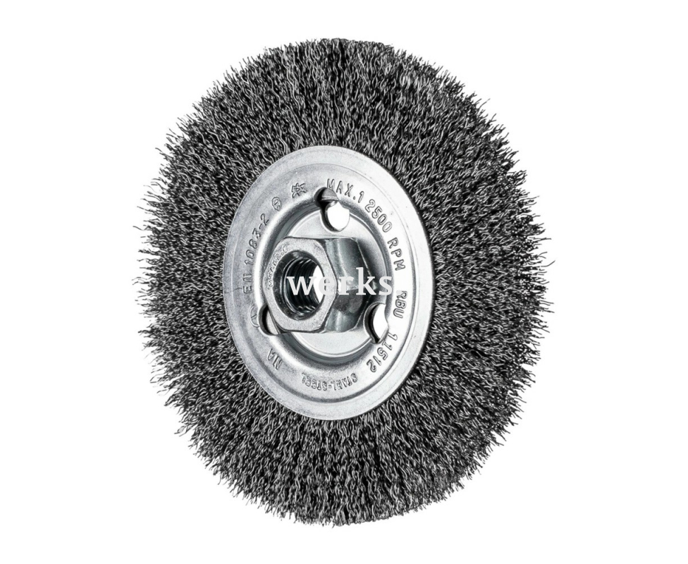 Щетка-крацовка RBU 11512 с диаметром 115 мм и посадкой M14. Проволока ST 0,30 SG из стали предназначена для интенсивной очистки поверхностей. Универсальное применение для металла, дерева и пластика. Совместима с дрелями и шуруповертами.