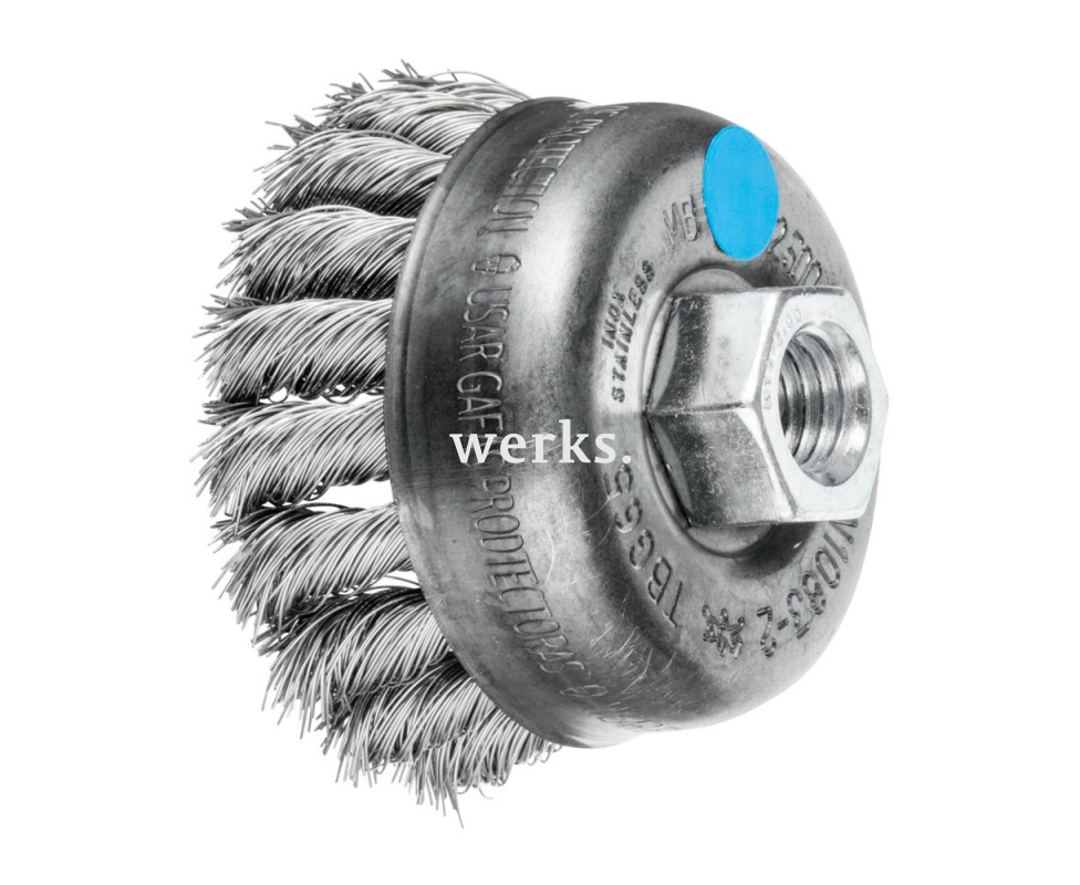 Щетка-крацовка TBG 65 с диаметром 65 мм и посадкой M14. Проволока INOX 0.35 предназначена для деликатной очистки нержавеющей стали. Универсальное применение для пищевого оборудования и деликатных поверхностей. Совместима с дрелями и шуруповертами.