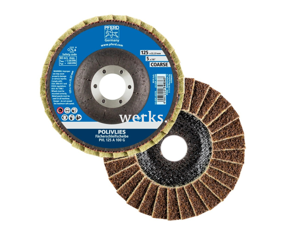 Шлифовальный круг PVL 125 диаметром 125 мм с зернистостью A 100 G. Предназначен для среднего шлифования металлических поверхностей. Гибкая основа позволяет адаптироваться к сложным профилям. Совместим с углошлифовальными машинами с посадкой 22.2 мм.