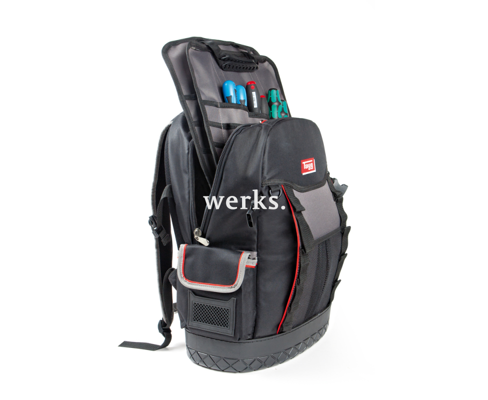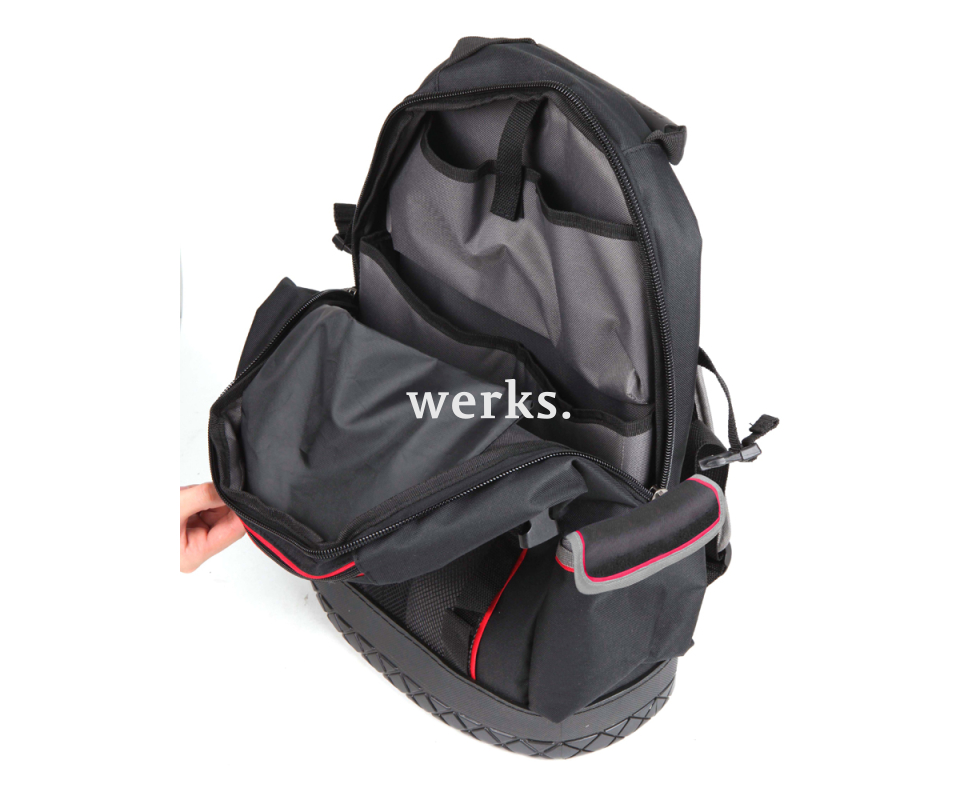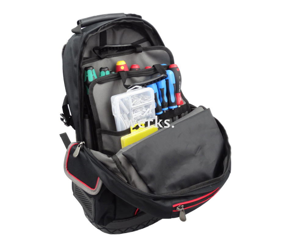 Изготовлен из прочного полиэстера, с водоотталкивающим дном из качественного полиэтилена. Оснащен регулируемыми плечевыми ремнями и удобной прорезиненной ручкой. Внутренняя панель съемная и включает карманы для инструментов. Внутреннее разделение на секции предоставляет широкие возможности для транспортировки инструментов и других предметов. Спереди расположен накладной карман на молнии, а боковые карманы идеально подходят для бутылки с водой, кружки и других мелочей. Размеры составляют 490х390х190 мм, а внутренний объем равен 30 л.