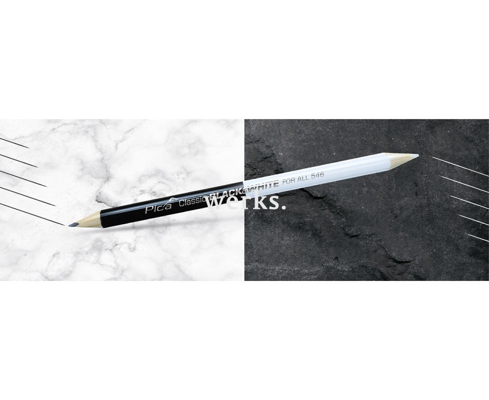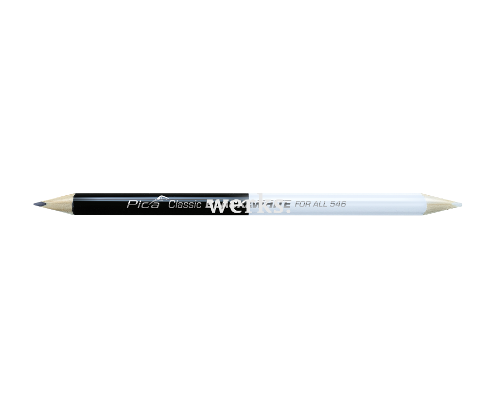 Универсальный двусторонний карандаш для маркировки как светлых, так и темных поверхностей, обладающий эргономичной трехгранной формой. Черная сторона содержит толстый графитовый грифель с твердостью 2H, а белая сторона - толстый универсальный белый грифель. Идеально подходит для разметки металла, стекла, пластика, плитки, керамики и ламината.