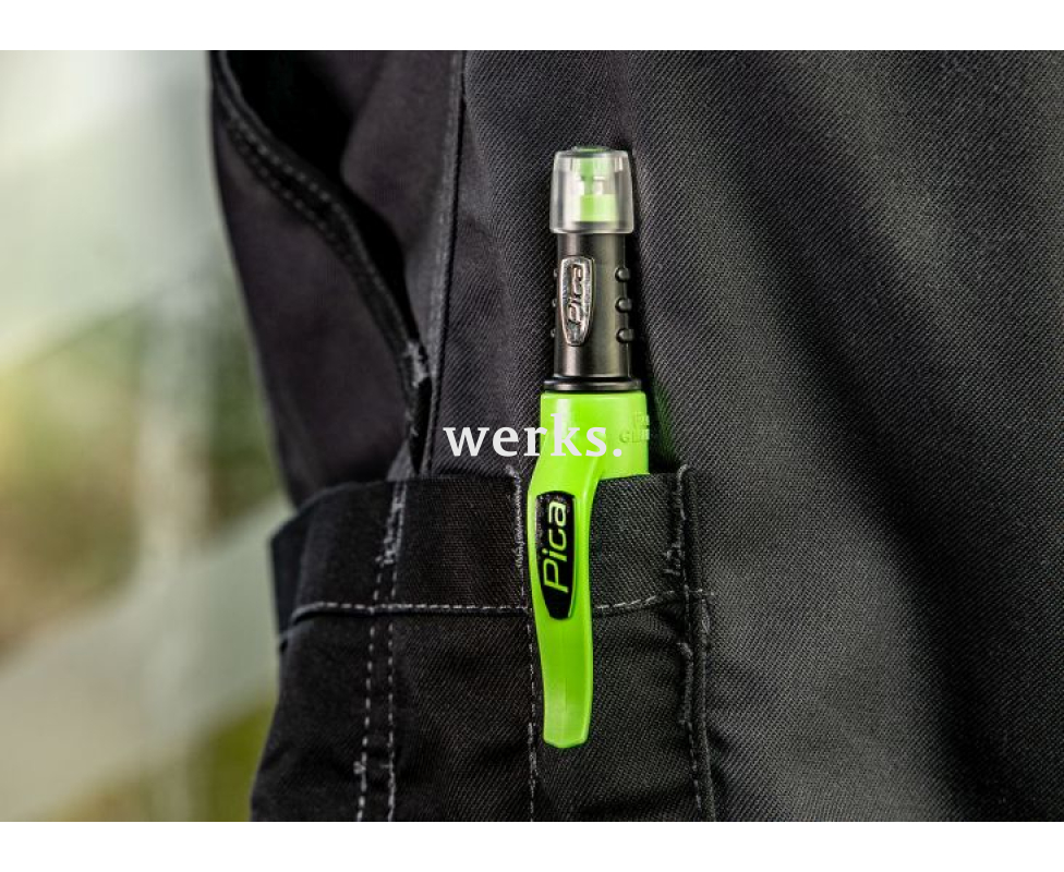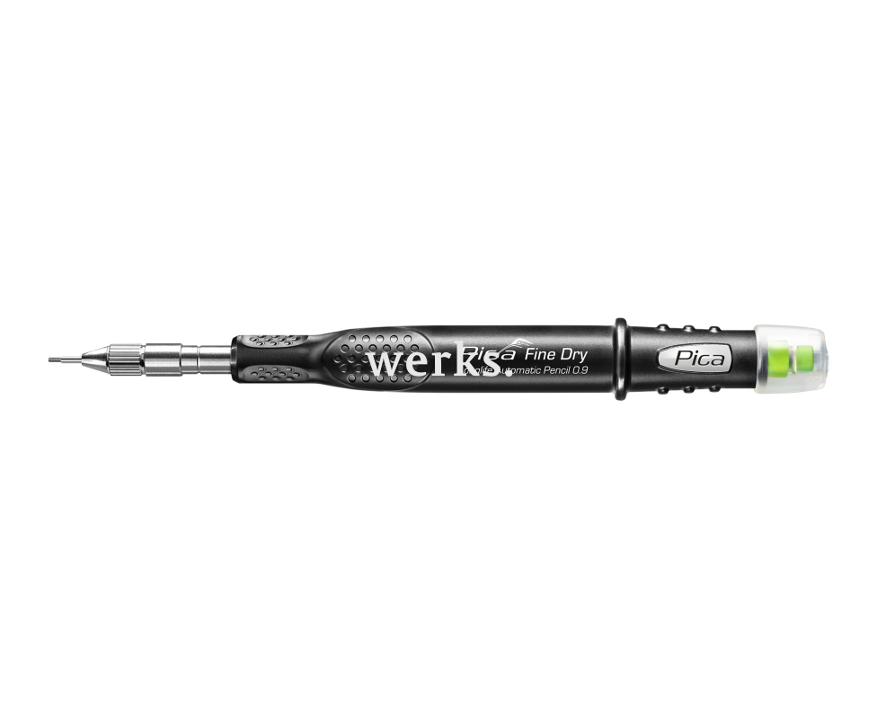 Автоматический строительный карандаш Pica Fine Dry 7070 с графитовым стержнем диаметром 0,9 мм идеально подходит для точной и аккуратной разметки без необходимости в заточке. В комплект входят 5 грифелей HB, которые удобно размещены в корпусе карандаша. Встроенный ластик позволяет легко исправлять ошибки в разметке. Современный нажимной механизм обеспечивает автоматическую подачу грифелей. Наконечник карандаша можно открутить для очистки или замены сломанного грифеля. Также предусмотрена эффективная защита от пыли и влаги.