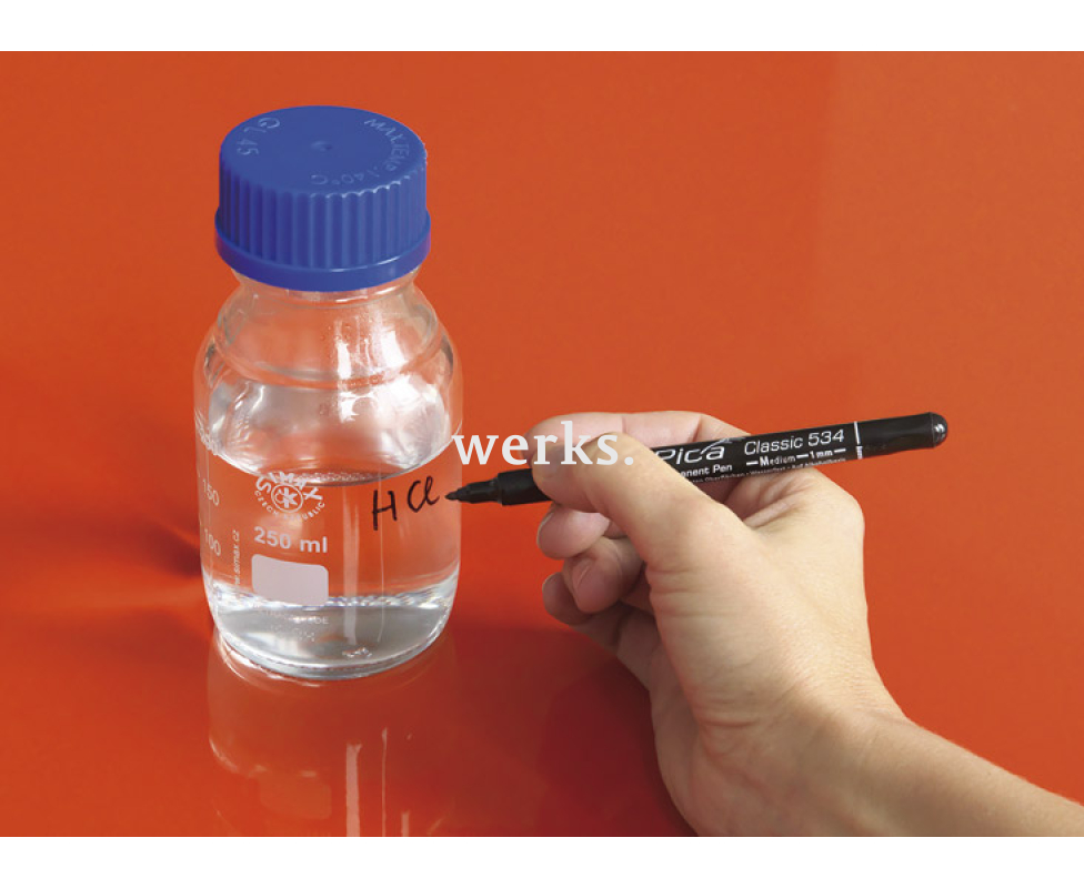 Тонкий черный маркер с водоотталкивающим, стойким к смыванию наполнителем на спиртовой основе. Обеспечивает возможность создания четкой контрастной разметки шириной 1 мм на различных поверхностях, таких как дерево, стекло, керамика, резина и пластик. Не содержит толуола и ксилола.