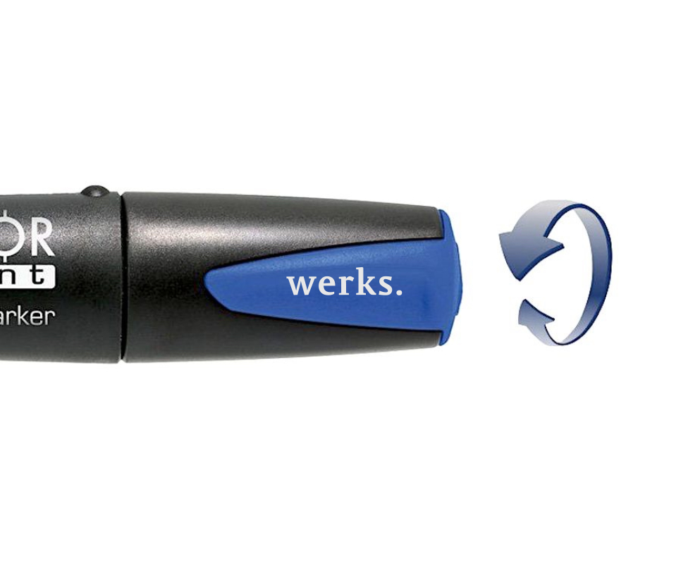 Маркер, основанный на перманентном восковом карандаше, подходит для нанесения на различные поверхности: сухие, влажные, пыльные, чистые, глянцевые и шероховатые. Он не пересыхает. Диаметр его стержня составляет 10 мм, а длина — 85 мм. Механизм подачи работает по винтовому принципу, а стержни можно заменять. Яркий флуоресцентный оранжевый цвет специально разработан для использования в условиях низкой освещенности и хорошо воспринимается оптическими датчиками, а также эффективно подсвечивается ультрафиолетом. Не рекомендуется нагревать маркер выше 40° С.