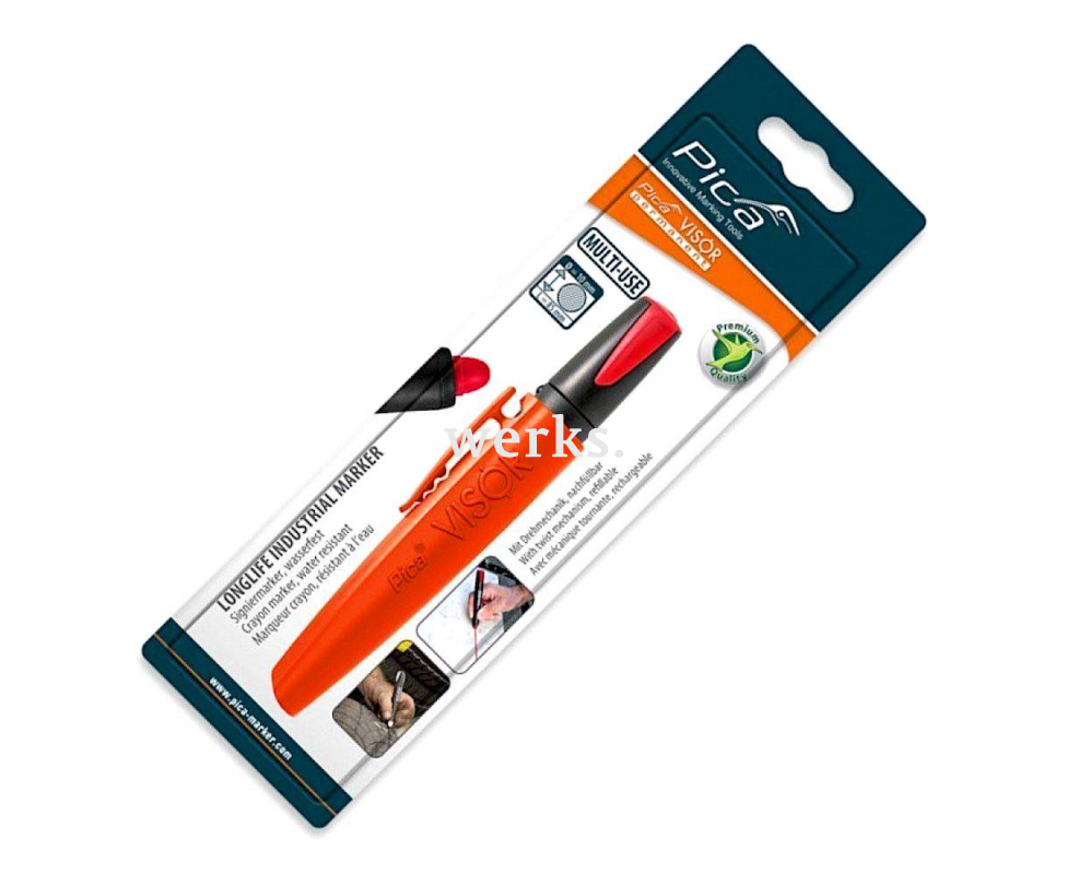 Профессиональный сухой промышленный маркер предназначен для маркировки на влажных, сухих, чистых, запыленных или замасленных поверхностях. Он изготовлен на основе перманентного воскового карандаша. Диаметр стержня составляет 10 мм, а длина - 85 мм. Стержни не пересыхают. Этот инструмент позволяет наносить разметку на различных материалах, включая глянцевые, матовые и шероховатые поверхности, такие как дерево, ламинат, стекло, плитка, пластик, металл, резина и кожа, а также на офисные доски. У него надежный и долговечный винтовой механизм подачи стержня, а также быстрая и простая замена стержня. В комплект входит кофр с фирменной клипсой. Избегайте нагрева выше 40° С.
