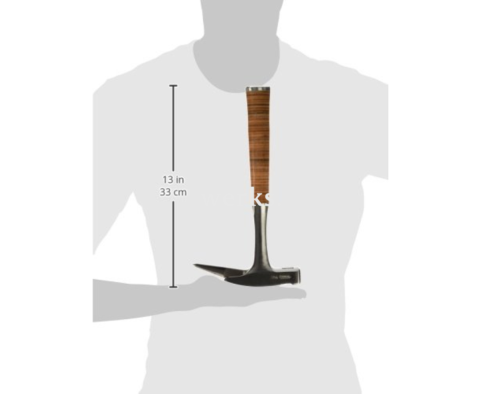Цельнометаллический молоток массой 300 г, оснащенный насечкой и магнитным держателем для гвоздей. Рукоятка обернута натуральной кожей. Этот инструмент является незаменимым помощником в кровельных и плотницких работах.