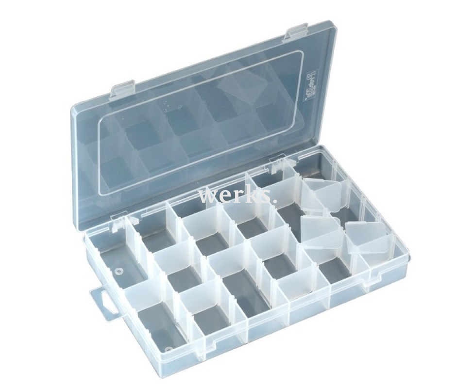 Удобный и надежный контейнер из полипропилена кассетного типа, предназначенный для организации различных деталей. В комплект входят дополнительные разделители ячеек - 503-132D-P (15 штук). Размеры - 275x177x42.5 мм. Вес - 318 г. Идеален для аккуратного хранения мелких электронных компонентов, деталей и крепежных элементов.