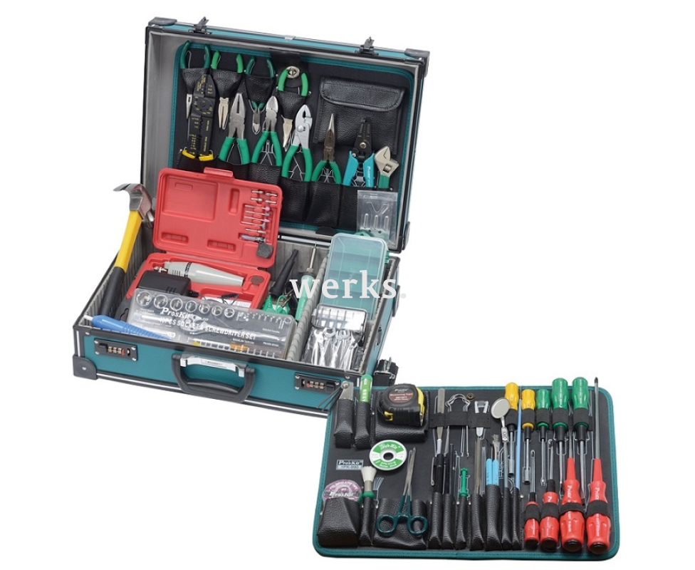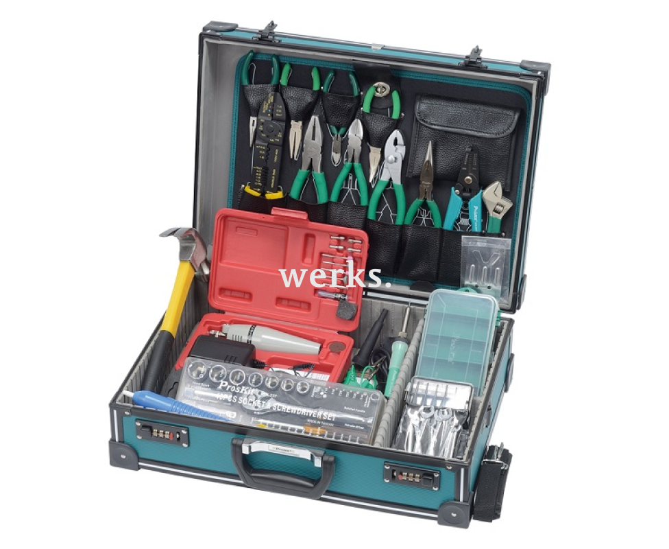 Профессиональный набор инструментов, необходимый для выполнения электромонтажных работ и обслуживания электротехники. Все инструменты в комплекте имеют более высокое качество по сравнению с отдельными оригинальными изделиями. Набор поставляется в прочном кейсе с кодовыми замками, выполненном из ударопрочного пластика с жестким алюминиевым каркасом и одной внутренней паллетой. Состав набора: - 103-132C Контейнер для компонентов; - 1PK-054S Плоскогубцы 135 мм; - 1PK-055S Длинногубцы с загнутыми губками 130 мм; - 1PK-051 Пассатижи 210 мм; - PN-086N Пассатижи с регулируемой головкой 154 мм; - 1PK-067 Кусачки-бокорезы 165 мм; - 1PK-705 Диагональные кусачки; - 1PK-706 Длинногубцы; - 1PK-709 Длинногубцы 150 мм; - PN-086N Плоскогубцы переставные прямые 154 мм; - 1PK-125T Пинцет заостренный; - 1PK-T406 Прямые щипцы 6'; - 1PK-317N Пружинный крючок; - 1PK-500B-2 Компактная дрель с адаптером; - 1PK-606A Набор антистатических центрирующих инструментов (3 шт.); - 1PK-H026 Разводной ключ 6'; - 9H002A Набор шестигранных ключей (7 шт.); - HW-609B Набор гаечных ключей (10 шт.); - 19400-M5/9408 Отвертка торцевая HEX 5 мм; - 19400-M6/9409 Отвертка торцевая HEX 6 мм; - 89401A Отвертка шлицевая 3,2x75 мм; - 89402A Отвертка шлицевая 5,0x75 мм; - 89407A Отвертка шлицевая 6,0x100 мм; - 89401B Отвертка крестовая PH0x75 мм; - 89402B Отвертка крестовая PH1x75 мм; - 89407B Отвертка крестовая PH2x100 мм; - 89414B Отвертка крестовая PH2x157 мм; - 8PK-2061 Набор отверток для электроники (6 шт.); - 8PK-227 Набор из 40 торцевых головок и отверток с рукояткой-трещоткой; - 8PK-3001D Стриппер; - 8PK-313B Кримпер; - SI-130B-20 Паяльник; - DP-366P Оловоотсос; - 9S002A/B/C Вспомогательные инструменты для пайки (3 шт.); - 8PK-031B Оплетка для выпайки; - 8PK-154 Щетка; - 8PK-605A Набор надфилей (5 шт.); - 908-609A Экстрактор для микросхем; - 9FL-005 Минифонарик; - 9H003 Трехпалый захват; - PD-2606 Молоток с гвоздодером; - 9IT Изолента ПВХ; - 9S001 Припой; - 9S004 Флюс (теплоотвод); - AS-611 Антистатический браслет; - DK-2040 Рулетка 3 м; - 1PK-390 Инспекционное зеркало. Размер кейса - 461x331x156 мм. Профессиональный набор инструментов, идеально подходящий для электромонтажа, работы с электротехникой и электропроводкой.