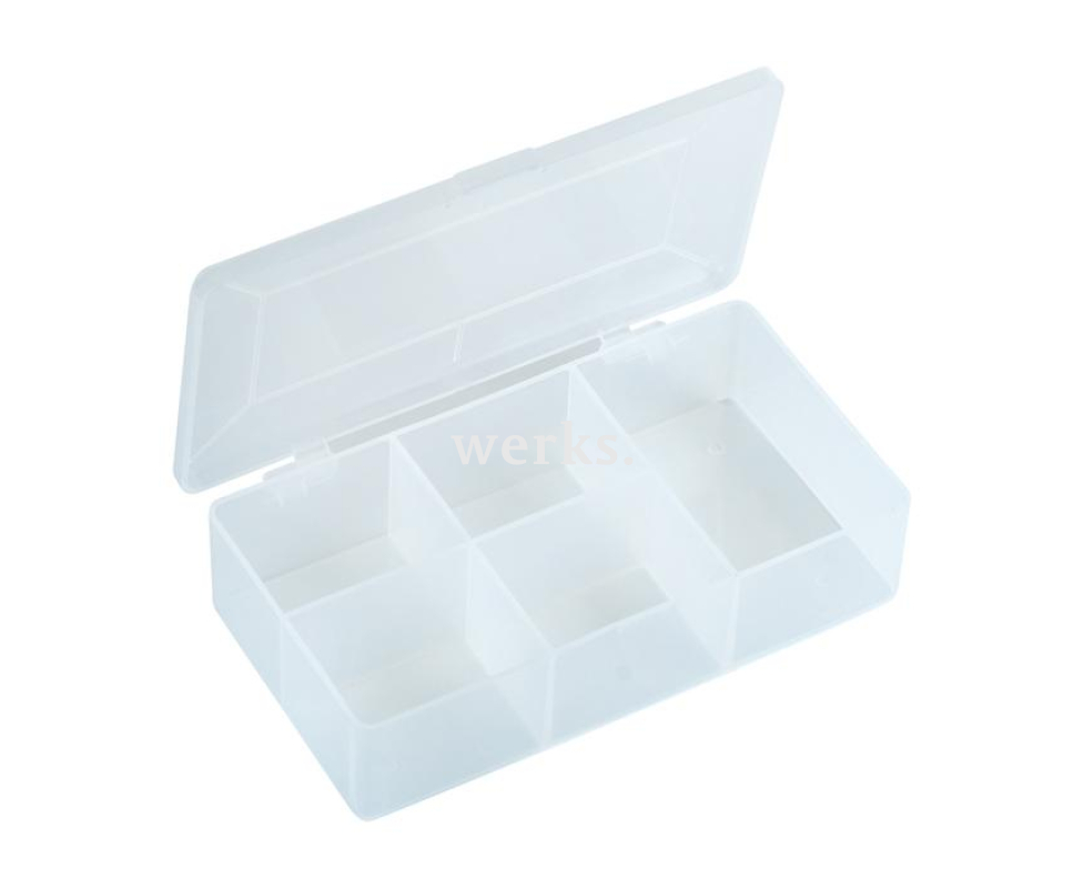Практичный и надежный контейнер из полипропилена с фиксированными перегородками для организации различных элементов. Размеры - 180x97x42 мм. Вес - 106 г. Для систематизированного хранения мелких электронных компонентов и деталей.