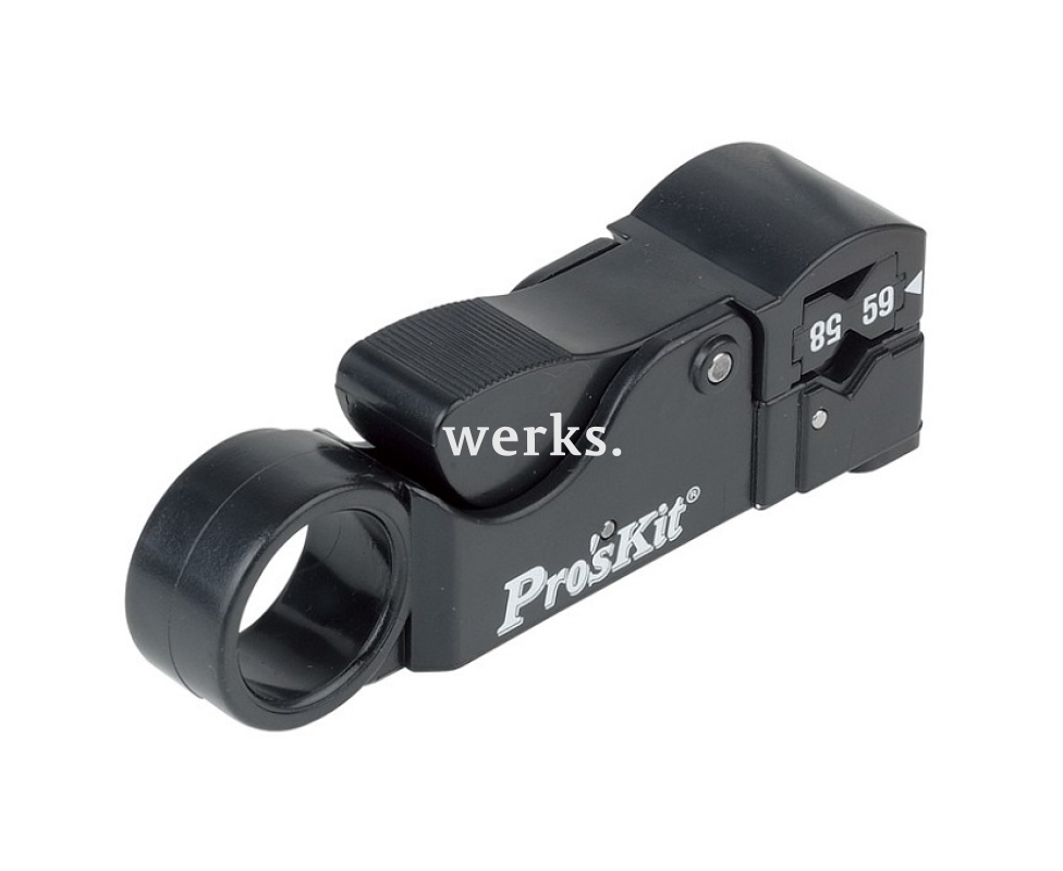 Вращающийся высококачественный стриппер с заменяемыми лезвиями для удаления изоляции коаксиального кабеля. Эта модель оснащена тремя настраиваемыми ножами, которые эффективно и быстро снимают трехслойную изоляцию. Поставляется в упаковке блистера. Сменные лезвия: 6PK-312B-BLADE. Длина инструмента - 105 мм. Стриппер предназначен для зачистки коаксиальных кабелей RG-58/59/62 / 3C / 4C.