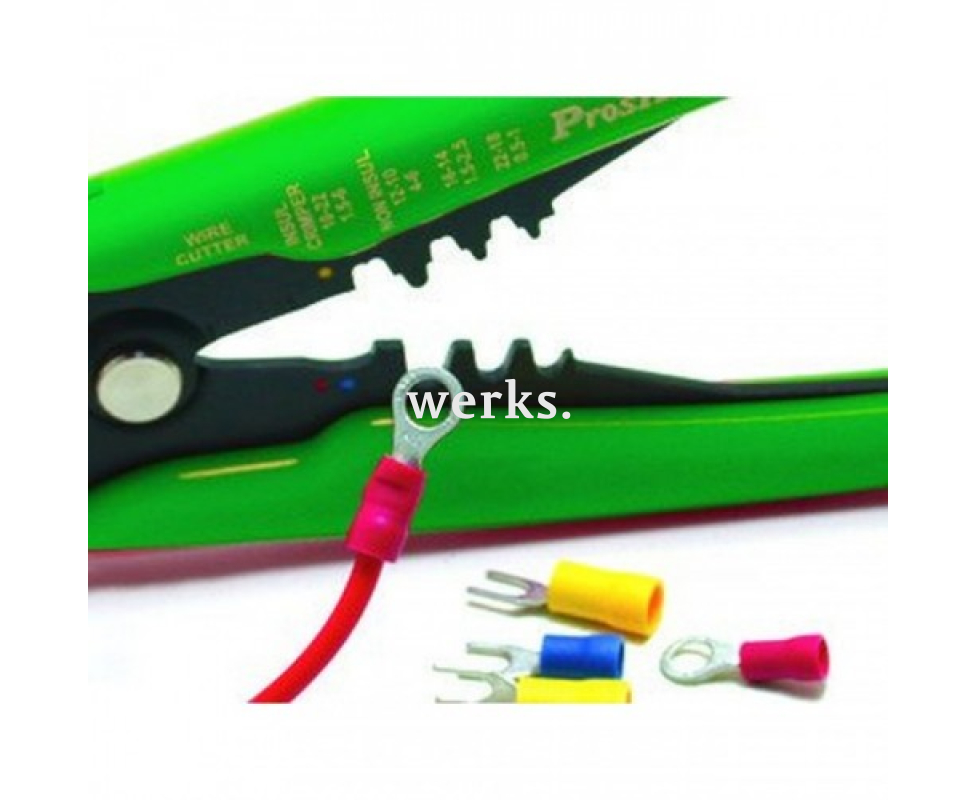 Универсальный инструмент. Его основное назначение - резка, зачистка и обжим проводов. Изготовлен из прочной низкоуглеродистой стали с антикоррозийным чернением. Прецизионные режущие кромки выполнены из высокопрочной легированной стали, обработаны и закалены до твердости 52-57 HRC. Удобные эргономичные рукоятки из полипропилена и термопластической резины обеспечивают комфорт в использовании. Поставляется в блистерной упаковке. Длина инструмента - 210 мм. Вес - 369 г. Инструмент предназначен для резки и зачистки проводов AWG 10-24 сечением 0.2-6.0 мм². Специальная ручка с регулировкой позволяет адаптировать стриппер для резки провода AWG24 сечением менее 0.2 мм². Идеально подходит для обжима изолированных клемм 22-10 AWG (0.5-6.0 мм²), а также для неизолированных клемм 22-10 AWG (0.5-6.0 мм²). Используется для автомобильных терминалов зажигания диаметром 7-8 мм.